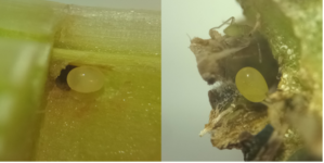 Trous de ponte de L. juncii percés d’un trou de prédateur ou de parasitoïde d’œuf