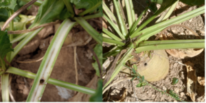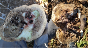 Betteraves sucrières infestées par du Rhizopus suite aux galeries laissées par L. juncii