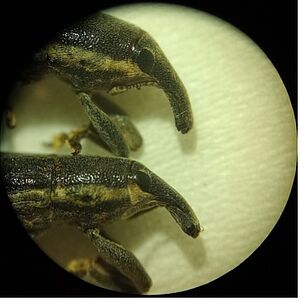 Il est possible de distinguer le mâle de la femelle en s’appuyant sur plusieurs critères. Le critère le plus évident reste la position des individus lors de l’accouplement, le mâle se trouvant toujours sur le dos de la femelle. Deux critères morphologiques peuvent toutefois être utilisés pour sexer à la loupe des individus isolés : la forme du dernier segment abdominal et la taille du rostre. Le critère le plus discriminant est l’observation en vue dorsale du dernier segment abdominal situé sous les élytres. Celui des femelles a une forme qui épouse celle des élytres, tandis que celui des mâles est plus large et rectangulaire (Loiseau et Chapelin-Viscardi, 2023). La pilosité de cette zone diffère également selon le sexe, elle est homogène chez les femelles et se poursuit sous les élytres alors que chez les mâles les soies sont plus denses et localisées sur l’extrémité du segment. La longueur du rostre peut aussi contribuer à distinguer le sexe des individus. Les femelles présentent un rostre plus allongé que celui des mâles, mais la différence est plus subtile à observer.