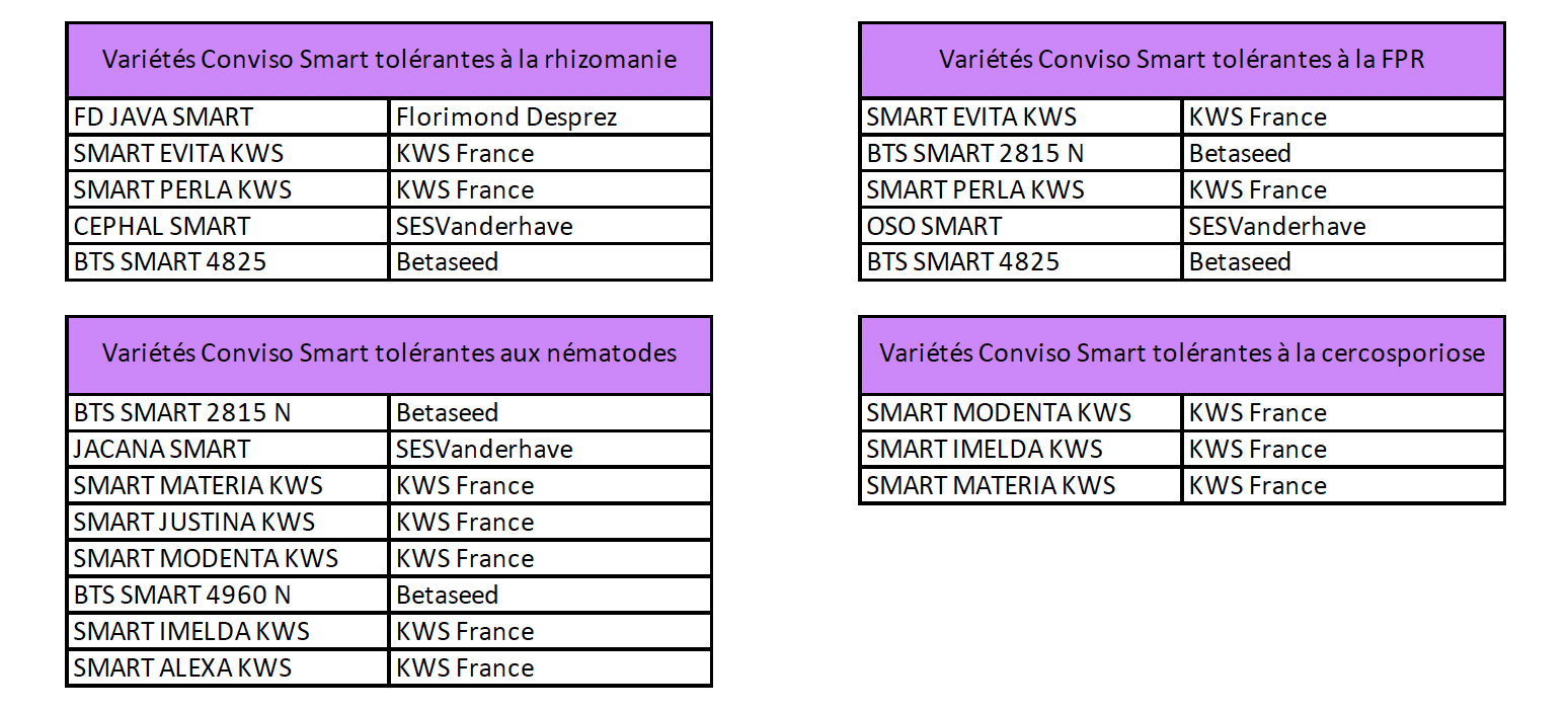 Variétés tolérantes à la rhizomanie et aux nématodes :