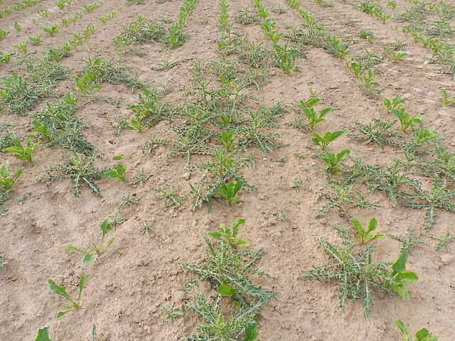 La lutte contre les chardons se fait aussi après moissons, en intervenant par des déchaumages suffisamment profonds (viser 15 cm) qui doivent épuiser et assécher les rhizomes.
