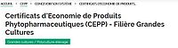 - les Certifications d’Économie de Produits Phytopharmaceutiques (CEPP)