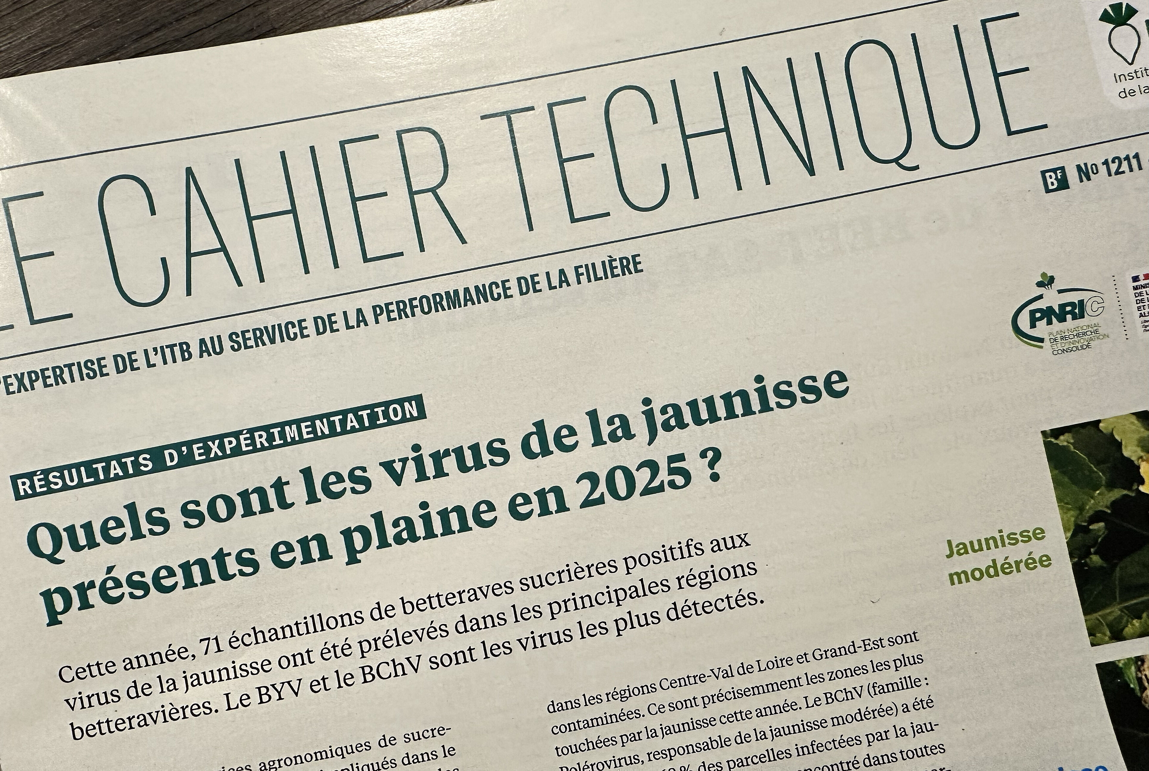 Ce Cahier technique dresse tout d’abord un bilan national des virus de la jaunisse observés en plaine en 2025, à partir de 71 échantillons analysés dans les principales régions betteravières. Les résultats confirment la prédominance du virus BYV, responsable des formes les plus sévères de la maladie, ainsi que la fréquence élevée des situations de co-infection, notamment avec le BChV. L'impact de la jaunisse sur le rendement dépend du type de virus et de la précocité de l’infestation.