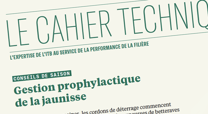 Trois des quatre pages de ce nouveau Cahier Technique présentent les mesures à mettre en place pour limiter le risque de jaunisse cette année. Cette lutte repose sur une gestion collective face à un risque endémique. L'ITB recommande à tous les betteraviers :
