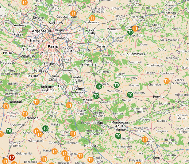 Carte des observations issues du BSV Ile-de-France du 21 juillet 2020.