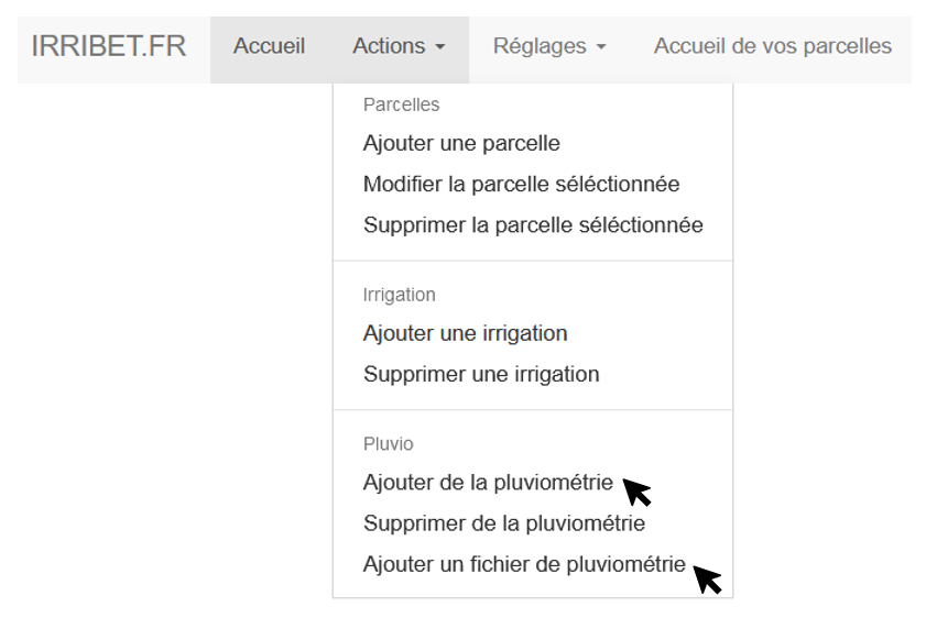 Les nombreux dysfonctionnements rencontrés ont conduit à abandonner la connexion de l’outil aux stations Sencrop®. Cependant, l’utilisation de données issues de stations personnelles reste possible grâce à deux fonctionnalités : l’ajout d’une pluviométrie ponctuelle et l’ajout d’un fichier de pluviométrie, avec un simple copier-coller réalisé à partir d’un tableur (Excel, LibreOffice).