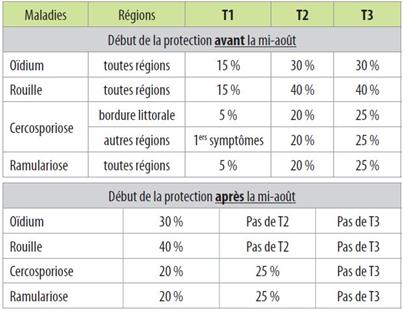 Rappel des seuils de traitement pour les maladies du feuillage :