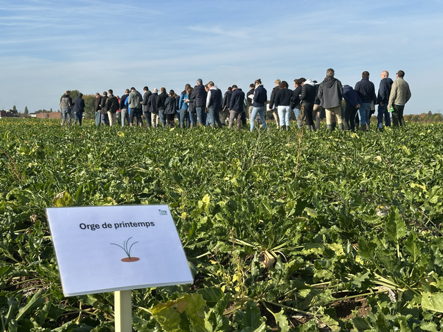 À Tilloy-lès-Mofflaines, les étudiants du Campus Agro-Environnemental 62 ont participé tout au long de l'année au suivi de la plateforme, permettant de les inclure à l'animation de la visite en présentant leurs propres observations réalisées sur le site. Les équipes de l’ITB ont ensuite pris le relais pour compléter ces présentations par des résultats et analyses issus du réseau national, sans oublier d'aborder la gestion des réservoirs viraux, primordiale dans la lutte contre la jaunisse.